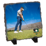 Square Matte Finish Subli Stone. Made of actual stone with chipped edges. Edges and back are dark charcoal grey. The SubliStone comes with two black plastic stands to display on any desk or mantle.