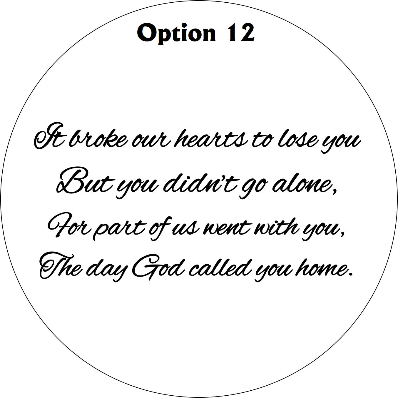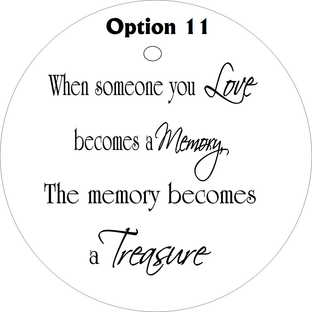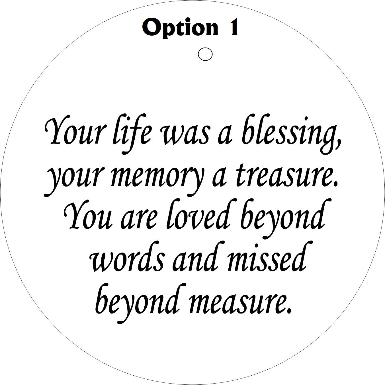 Options for saying on each side are listed below. We engrave both sides. We can put your loved ones name and dates on one side, and the saying on the other.