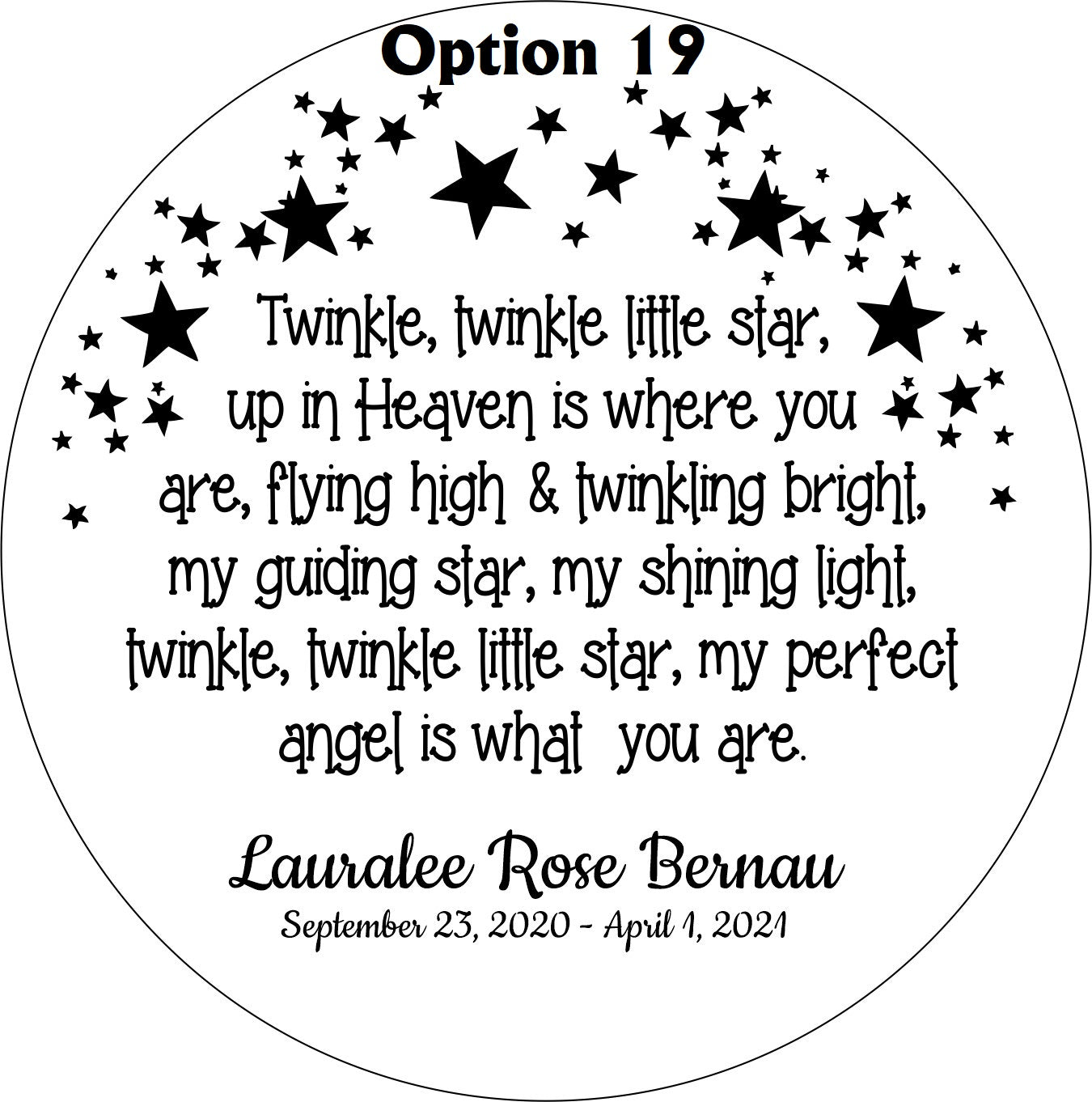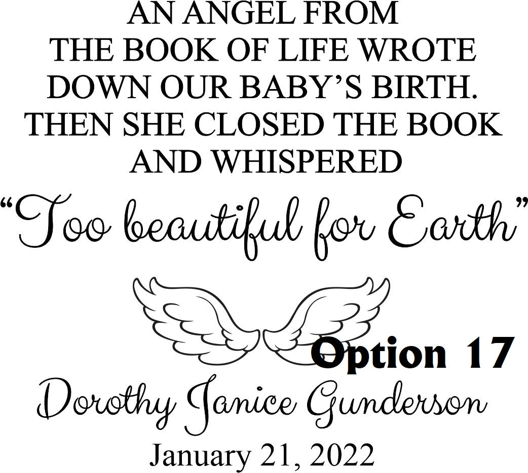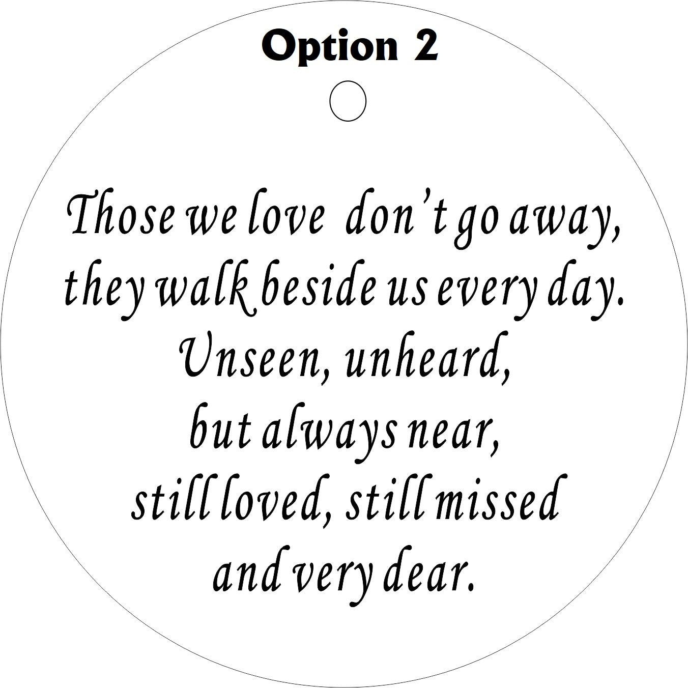 Options for saying on each side are listed below. We engrave both sides. We can put your loved ones name and dates on one side, and the saying on the other.