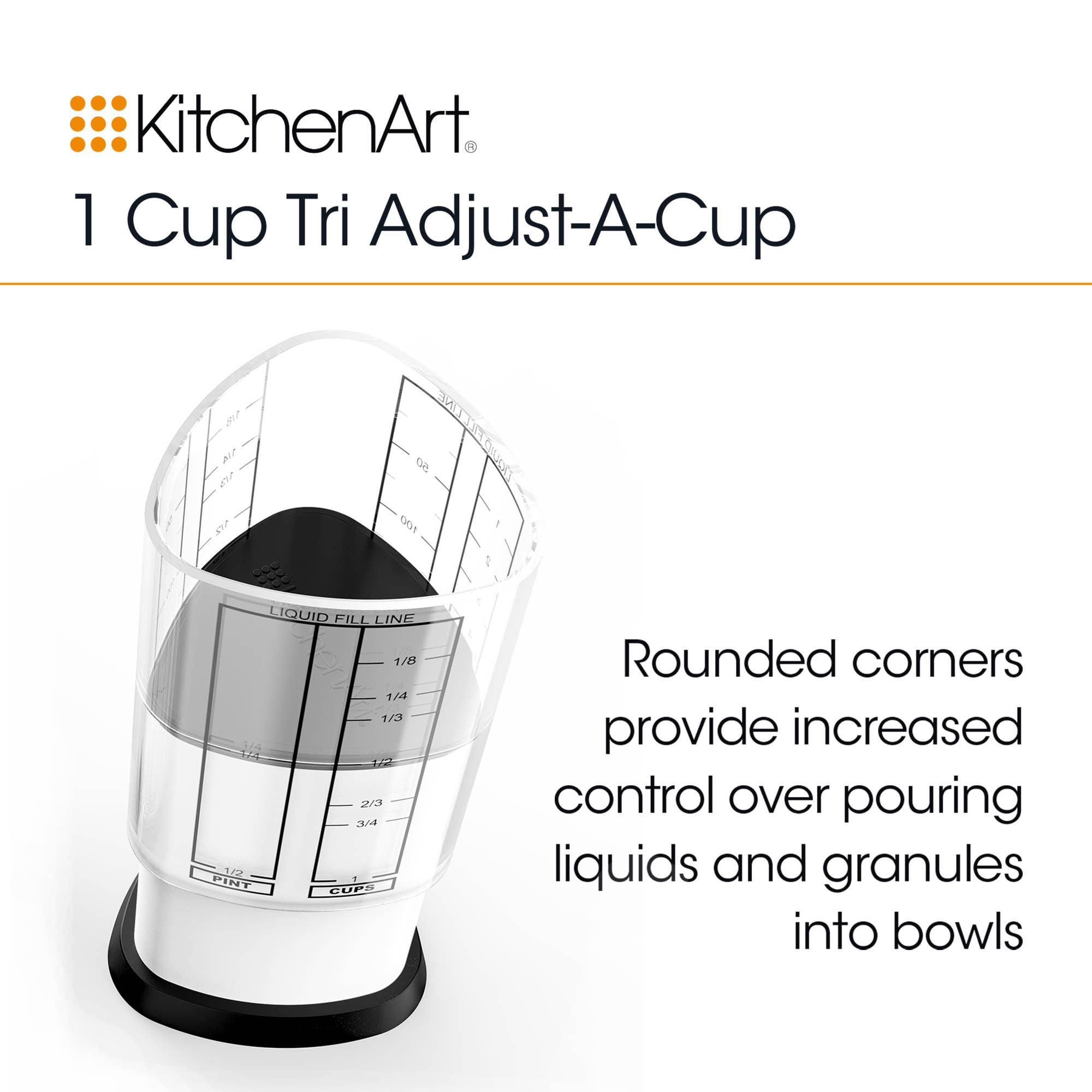 -SPACE SAVING FUNCTIONALITY: measure liquids, dry and semi-solid ingredients from 1/8 cup to 1 cup