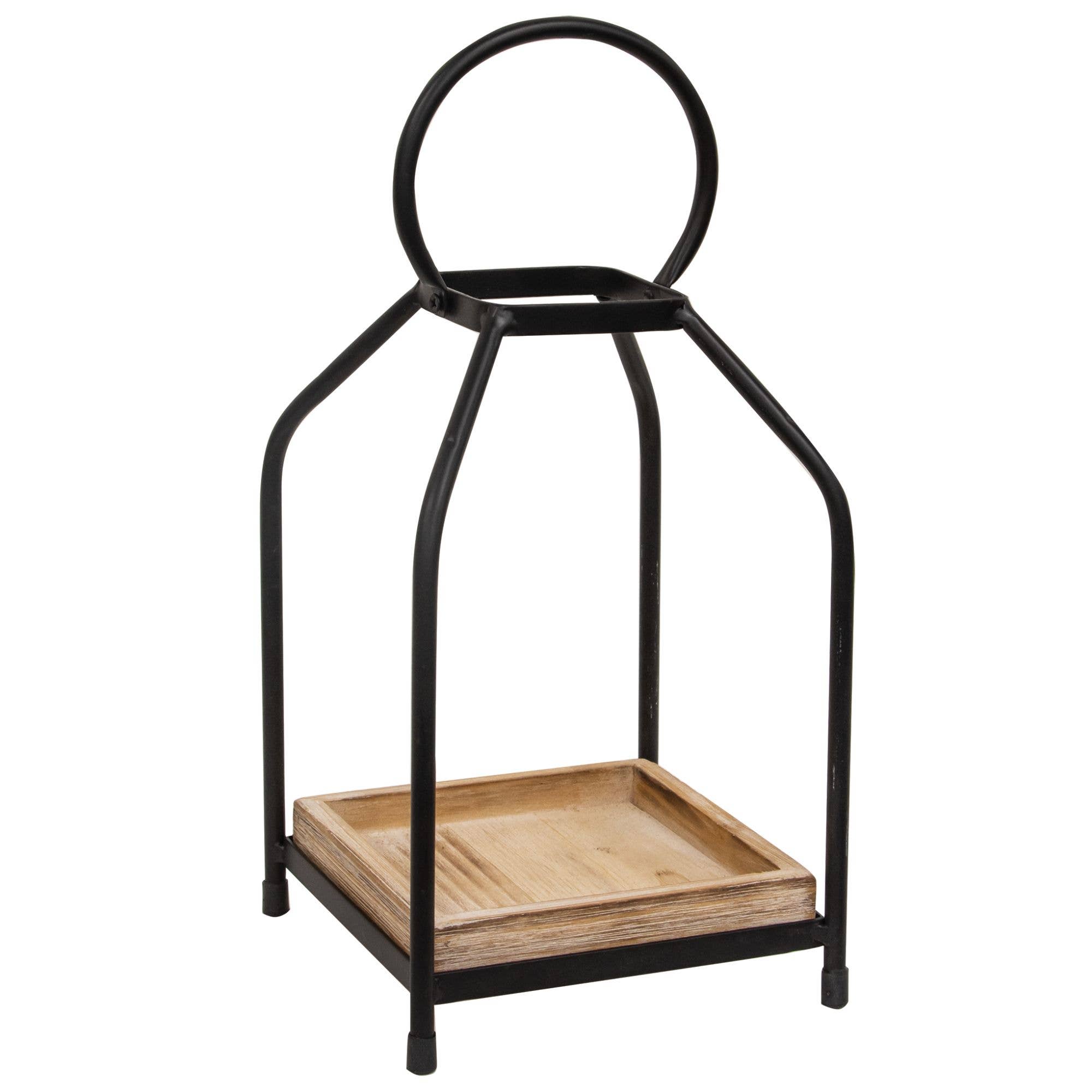Add a unique and eye-catching element to farmhouse displays with the Wood & Black Metal Open Air Lantern. This lantern is composed of black metal with a distressed wood tray in the center. It has a moveable metal handle on top for hanging or carrying. The open air design allows for a wide variety of additions including minimal and larger florals, a single pillar candle or grouping of smaller candles, and more! It measures 10" high and the dimensions at the widest point are 6.5" by 6.5".